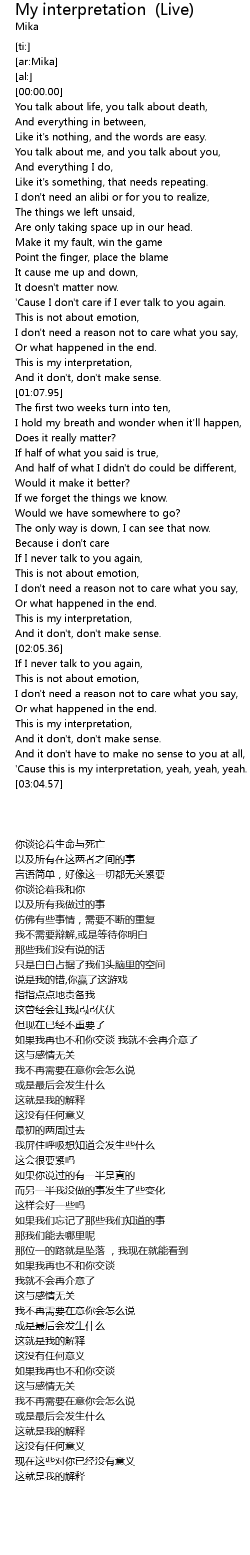 'Cause this is my interpretation, yeah, yeah, yeah. |