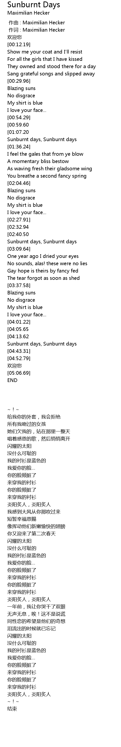 | [00:01.00] | 作词 : Maximilian Hecker |