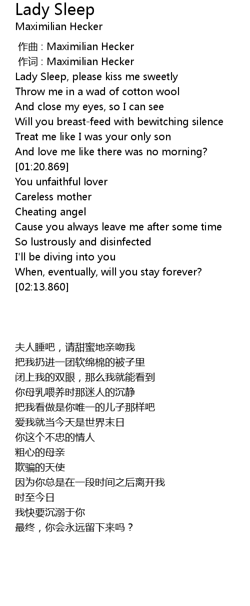 | [00:01.00] | 作词 : Maximilian Hecker |