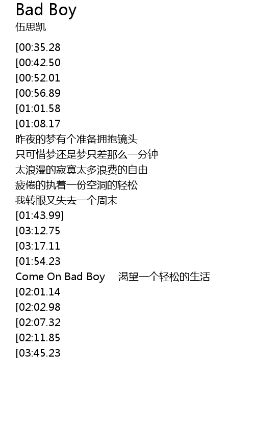 | [03:56.51] | Come On Bad Boy 渴望一个轻松的生活 |