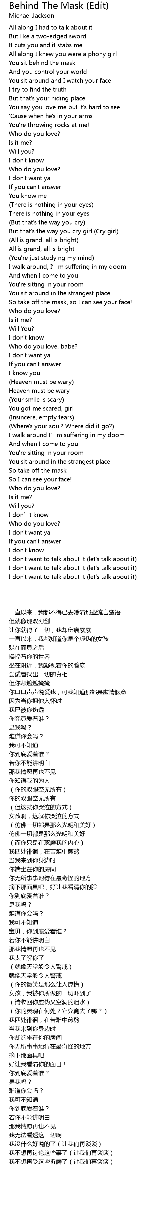 | [03:10.34] | I don' t want to talk about it let' s talk about it |