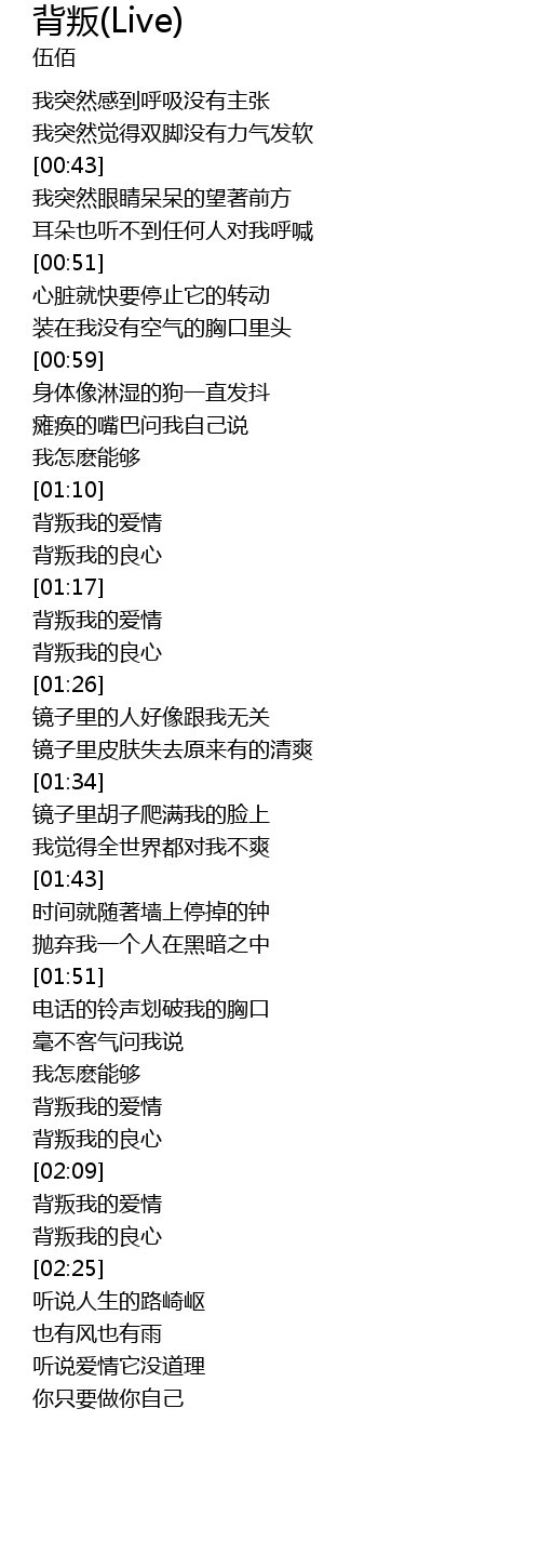 | [01:15] | bèi pàn wǒ de liáng xīn |