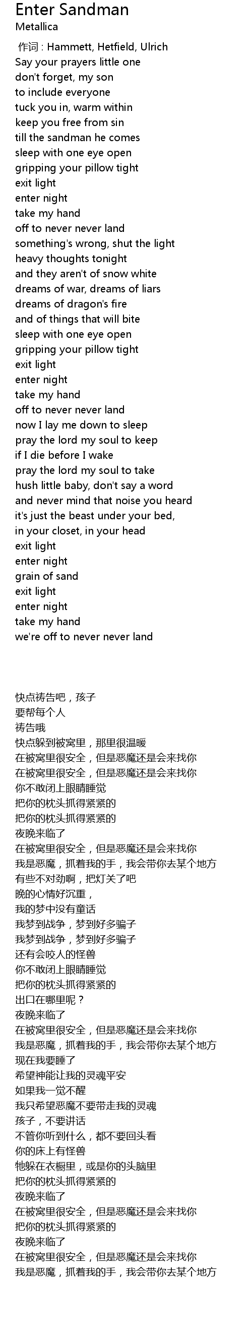 | [00:00.00] | 作词 : Hammett, Hetfield, Ulrich |