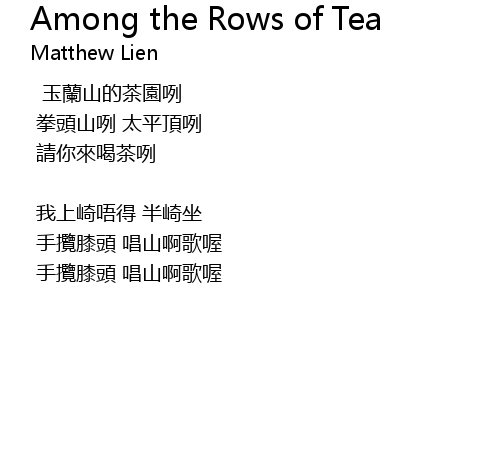 | shǒu lǎn xī tóu chàng shān a gē ō | |