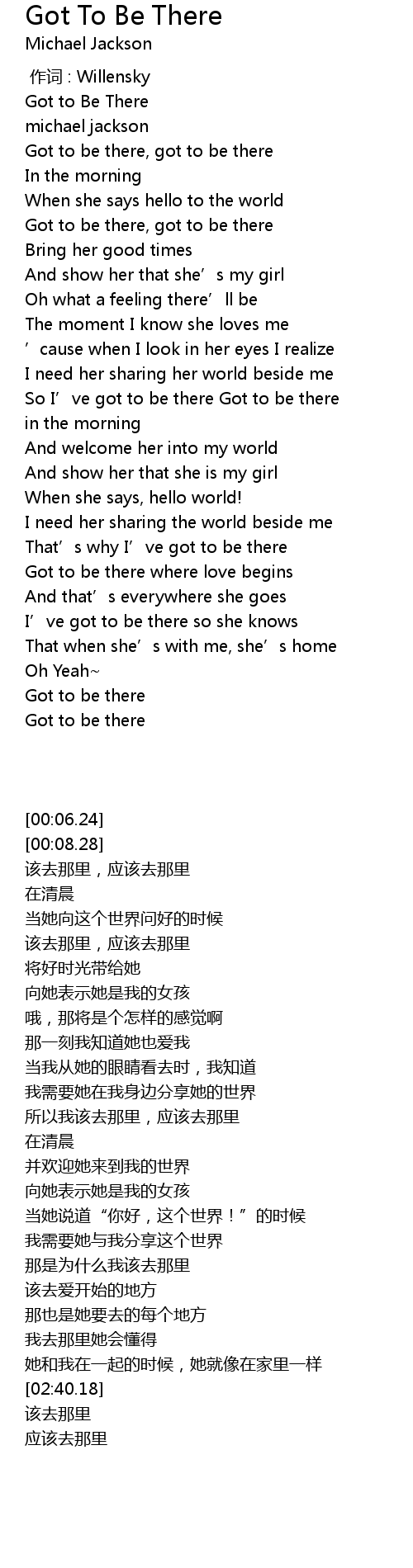 | [00:24.19] | Got to be there, got to be there |