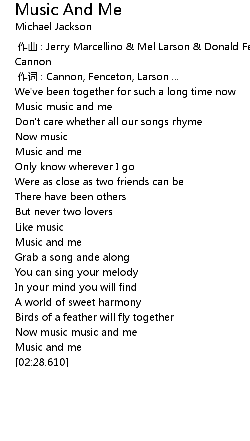 | [00:16.970] | Music music and me |