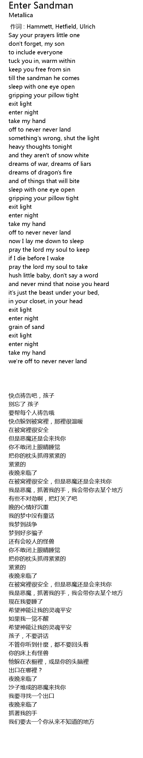 | [00:00.00] | 作词 : Hammett, Hetfield, Ulrich |