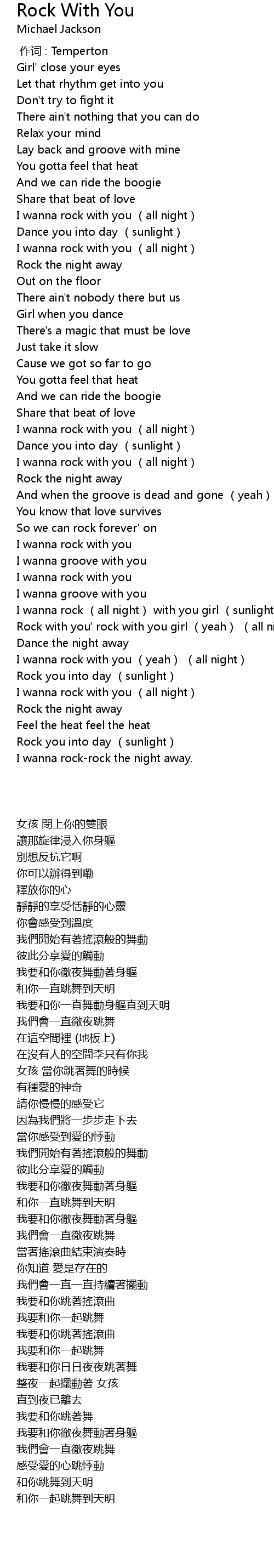 | [03:14.300] | I wanna rock with you (yeah) (all night) |