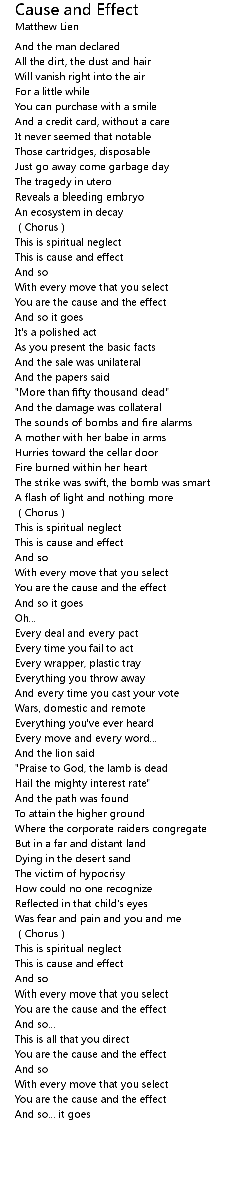 | 歌曲 | Cause and Effect |