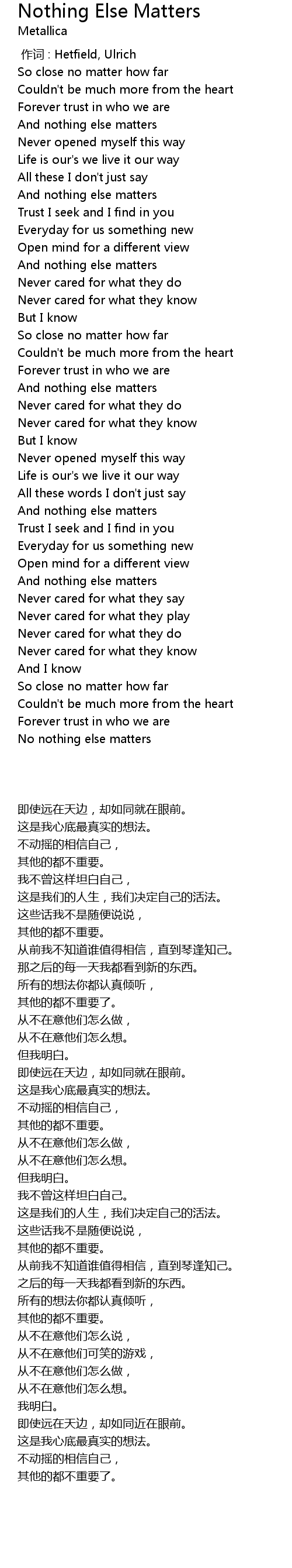 | [00:00.00] | 作词 : Hetfield, Ulrich |