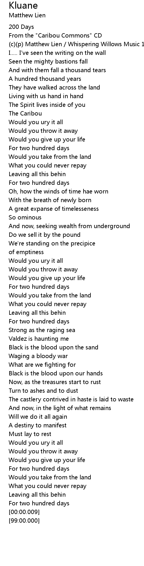 Kluane 歌词