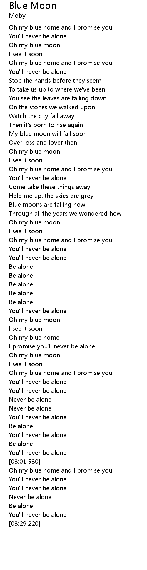 | [01:35.470] | Oh my blue moon |