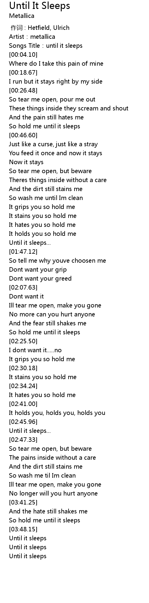| [00:02.10] | Songs Title: until it sleeps |