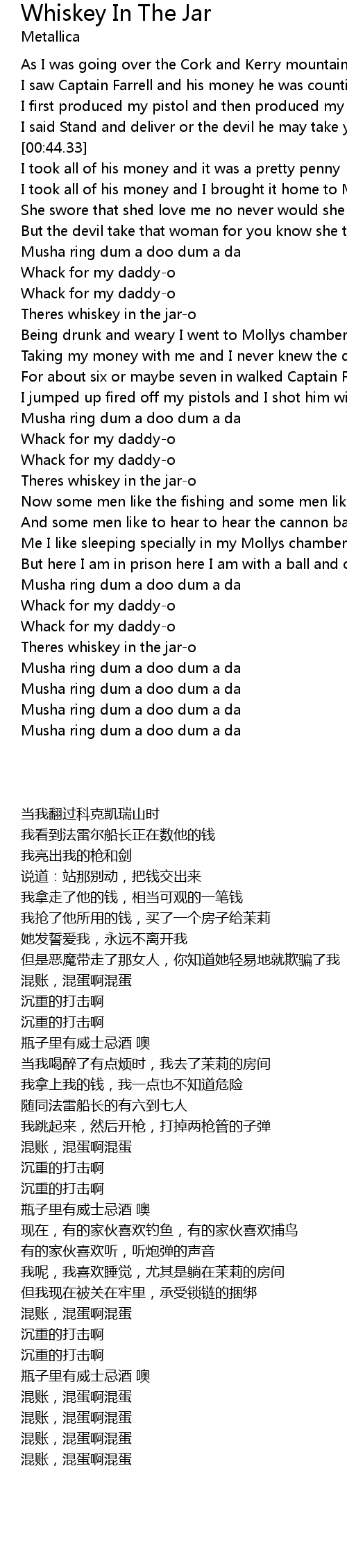Theres whiskey in the jar-o |