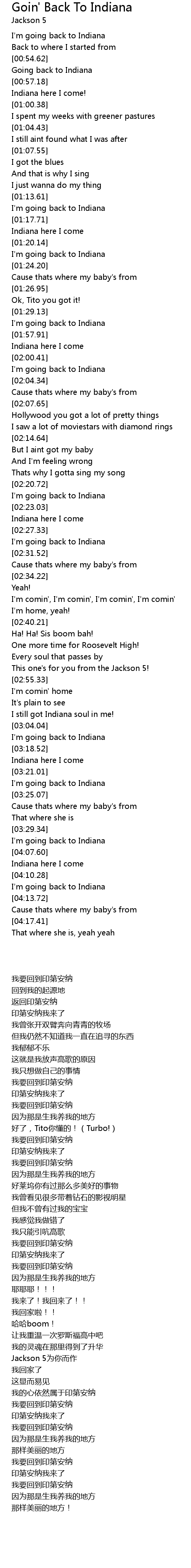 I'm going back to Indiana |