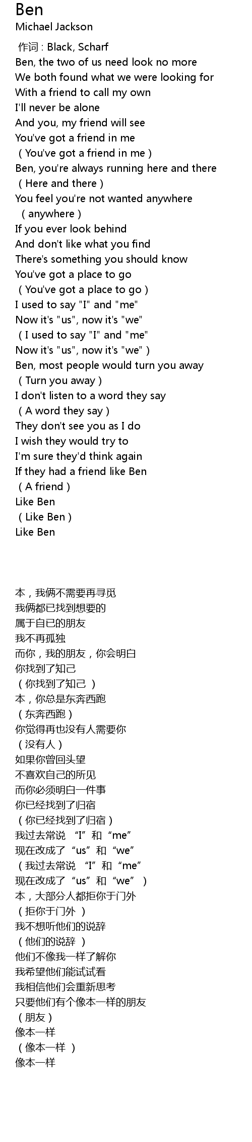 | [02:17.86] | If they had a friend like Ben |