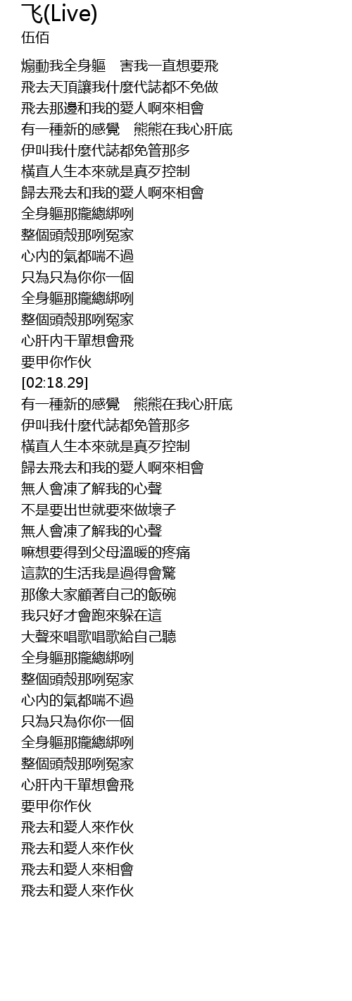 | [03:36.01] | 心肝內干單想會飛 |