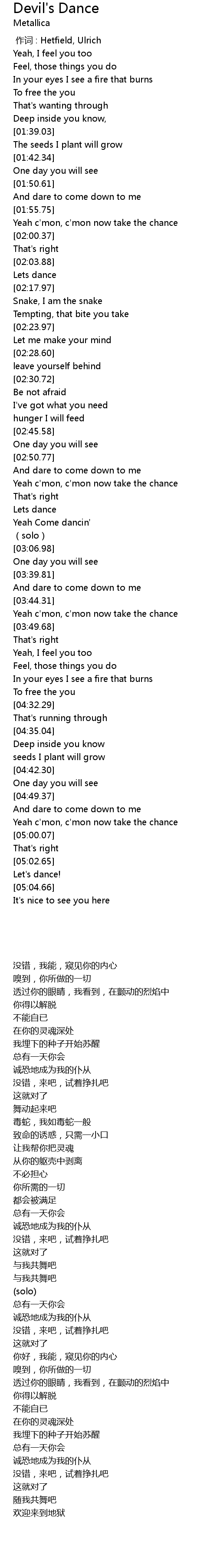 | [00:00.00] | 作词 : Hetfield, Ulrich |