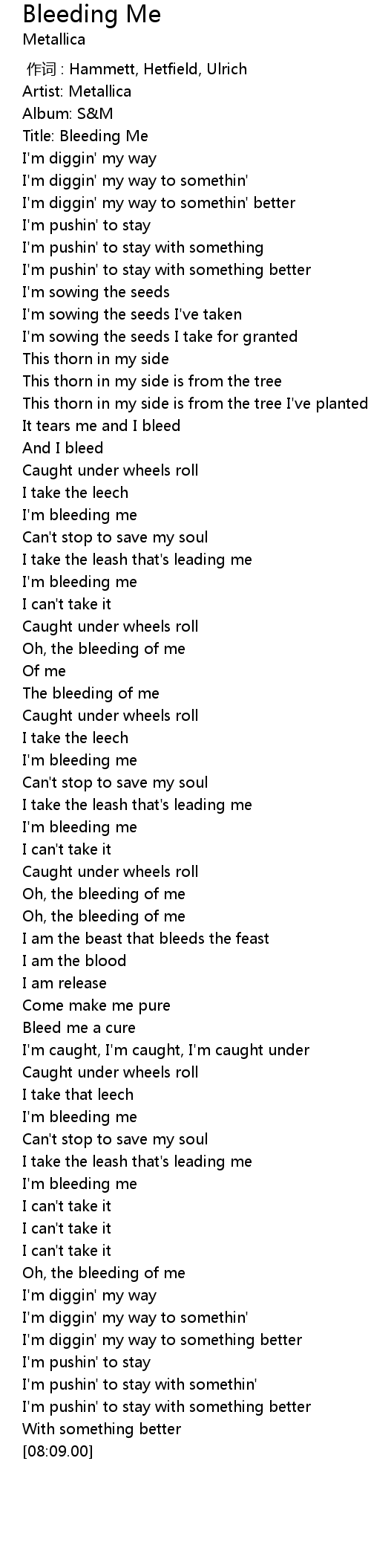 | [00:00.00] | zuò cí : Hammett, Hetfield, Ulrich |