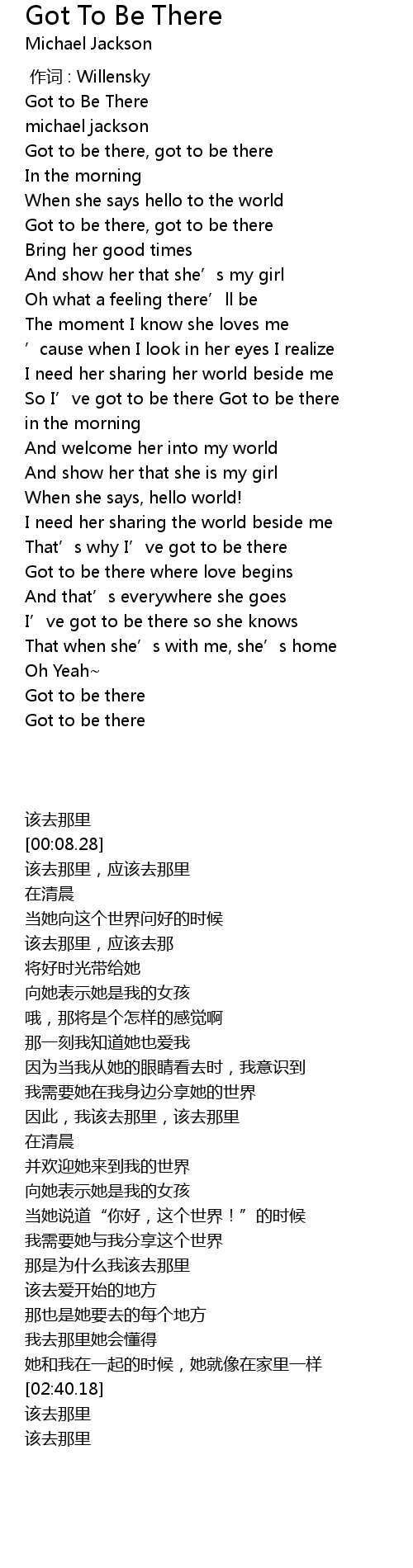 | [02:47.00] | Got to be there |