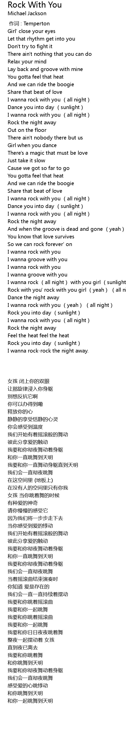 | [02:57.600] | Rock with you' rock with you girl yeah all night |