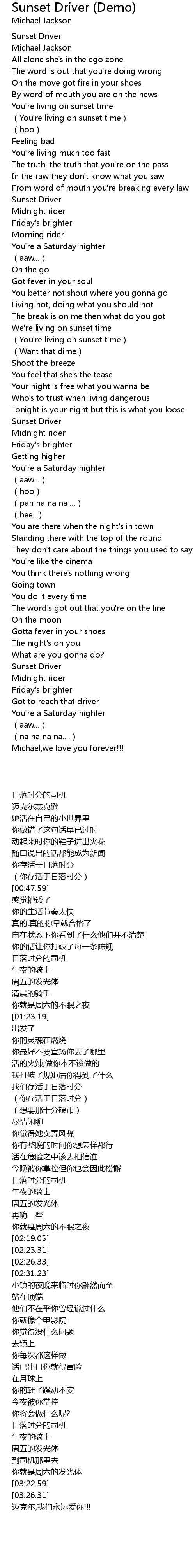 | [03:35.04] | Michael,we love you forever!!! |