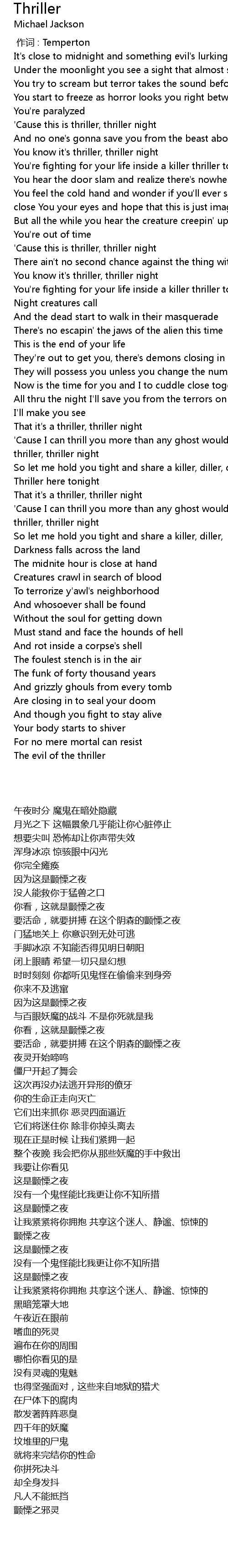 | [02:26.540] | 'Cause this is thriller, thriller night |