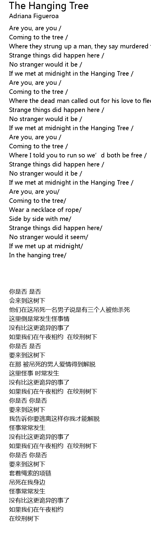 | [00:34] | If we met at midnight in the Hanging Tree |