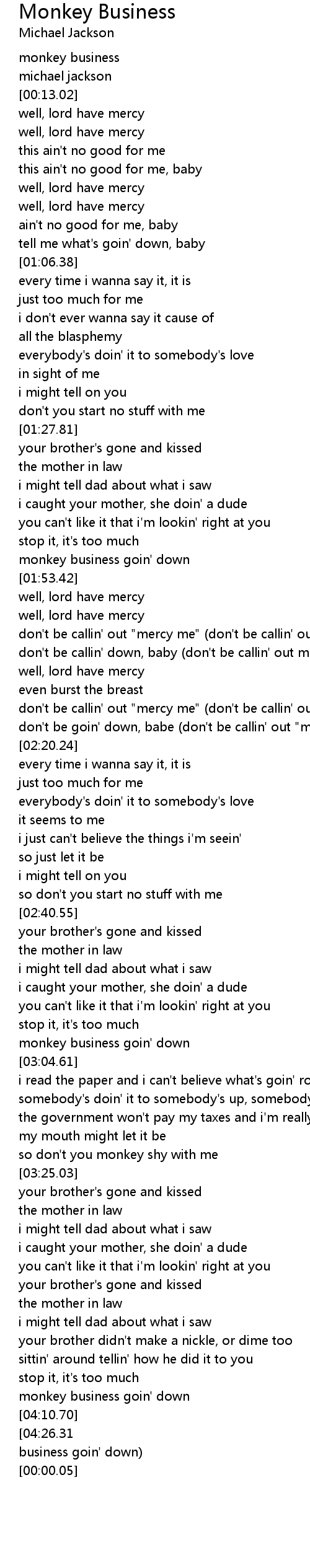 (monkey business goin' down) |
