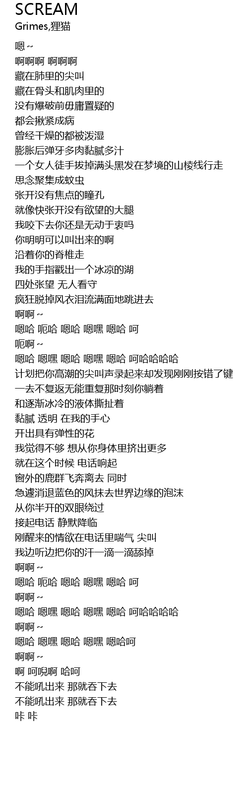 | [01:27.86] | 刚醒来的情欲在电话里喘气 尖叫 |