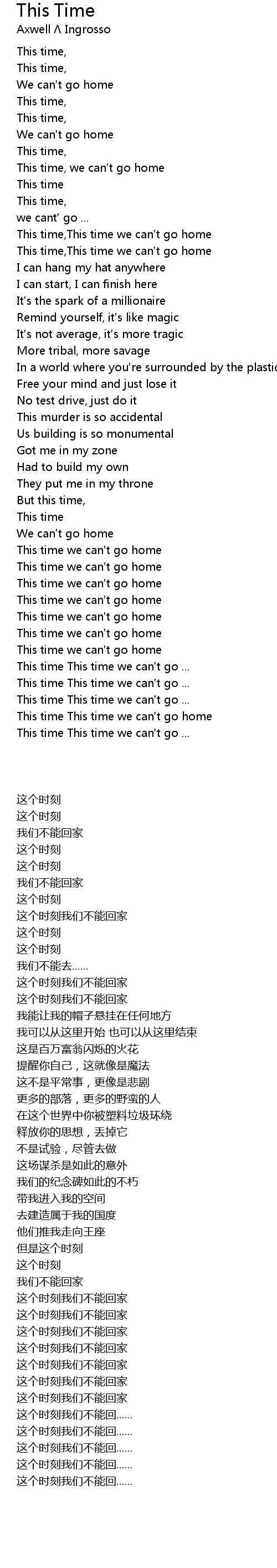 | [03:21.113] | This time This time we can′t go home |