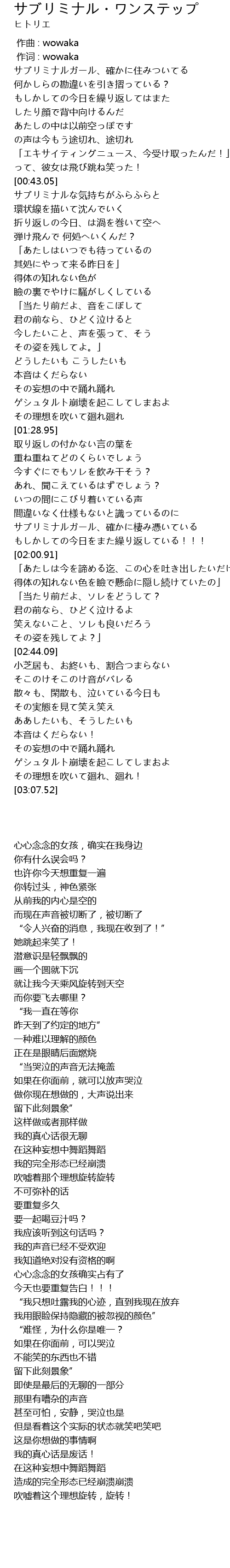 | [01:55.20] | サブリミナルガール、確かに棲み憑いている |