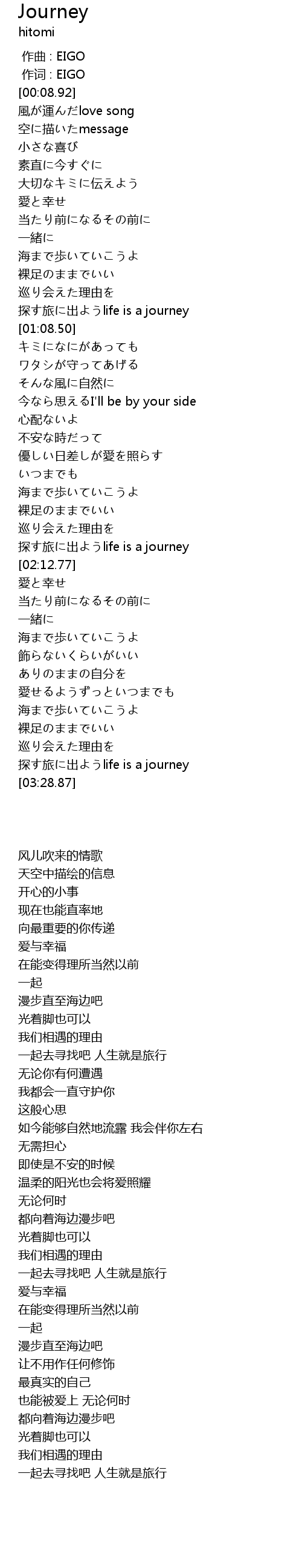 | [03:23.17] | 探す旅に出ようlife is a journey |