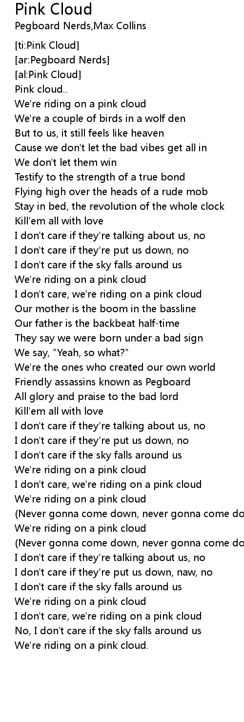 [01:13.23] I don't care, we're riding on a pink cloud