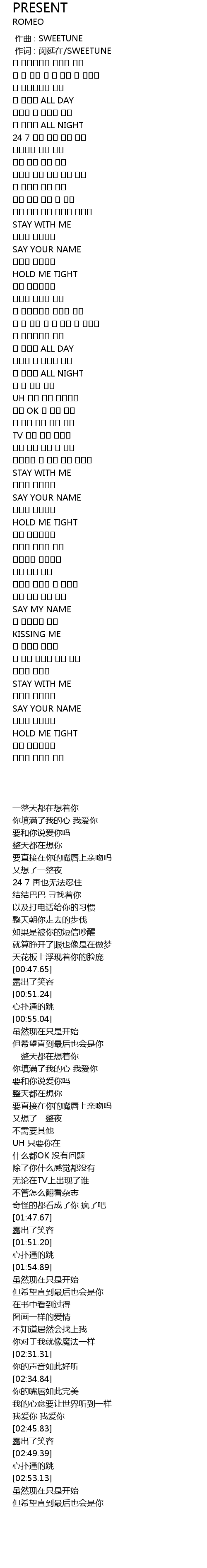| [00:01.00] | 作词 : 闵延在/SWEETUNE |