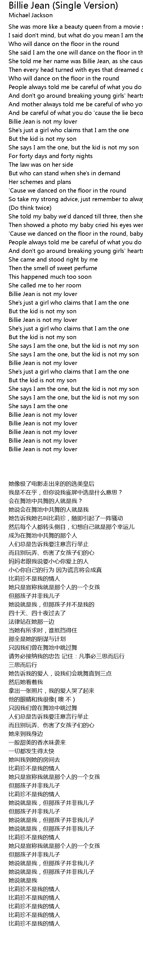 Billie Jean is not my lover |