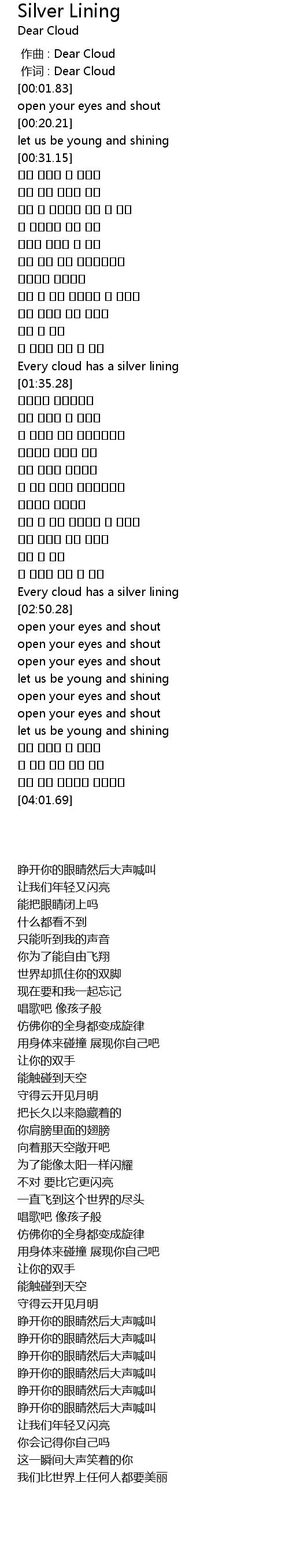 | [00:00.361] | 作词 : Dear Cloud |