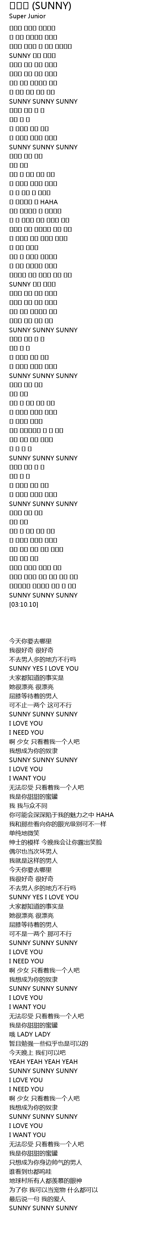 | [01:28.03] | SUNNY YES I LOVE YOU |