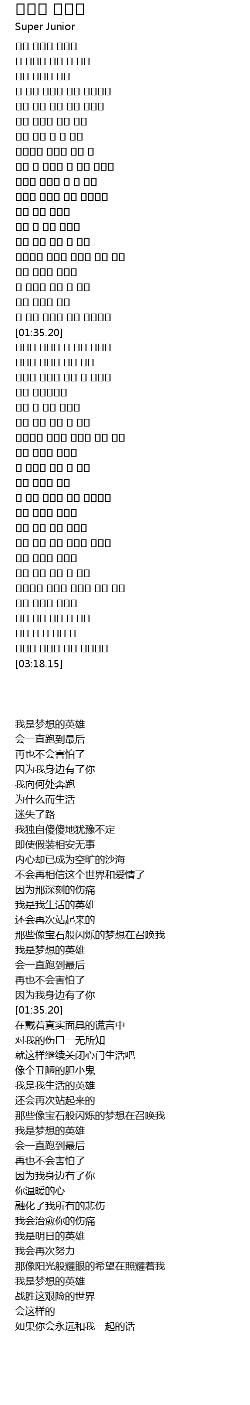 | [00:15.42] | 나는 꿈꾸는 히어로 |
