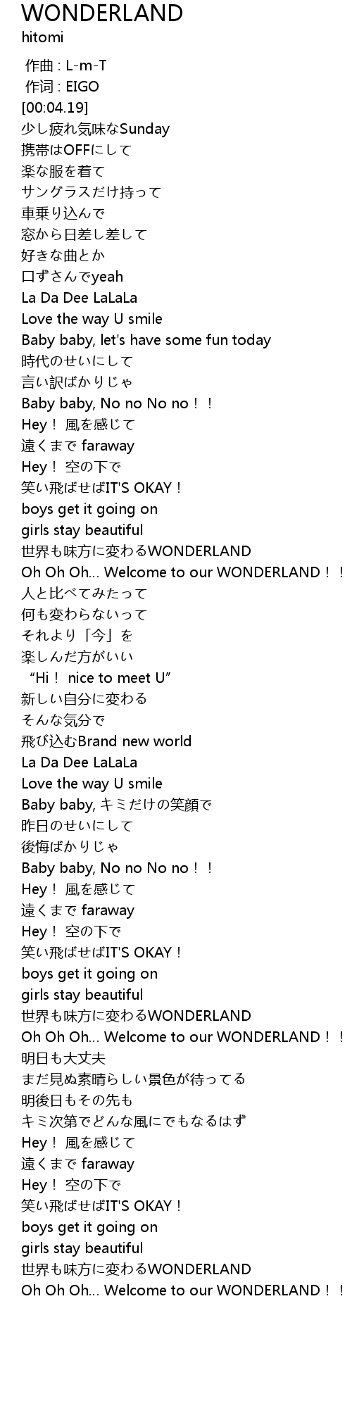 | [03:11.75] | Oh Oh Oh Welcome to our WONDERLAND!!! |