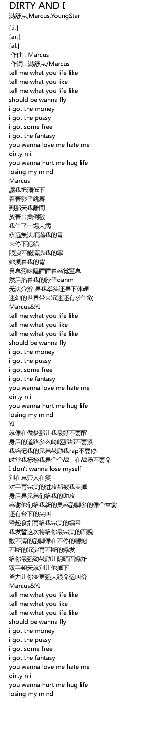 | [01:53.96] | wǒ míng jì wǒ de xiōng dì gǔ lì wǒ rap bú yào tíng |