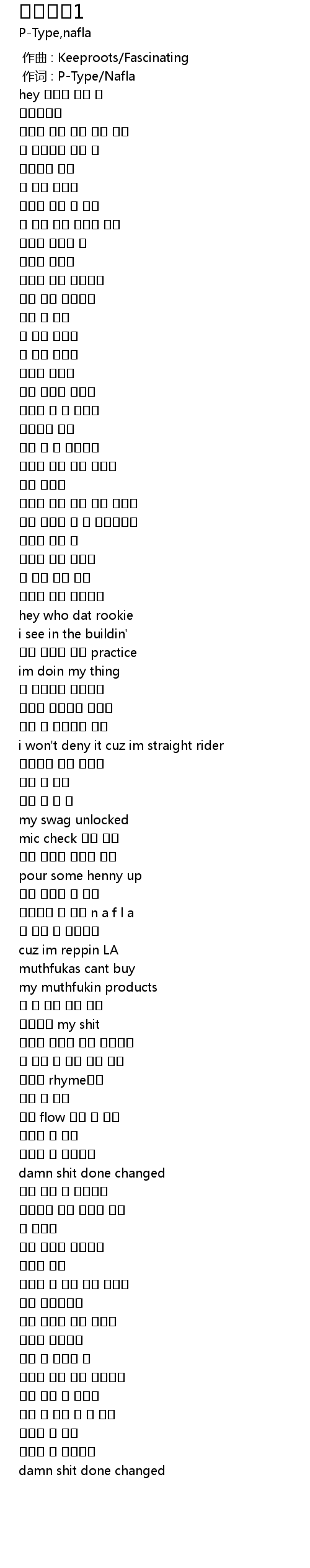 | [00:01.00] | 作词 : P-Type/Nafla |