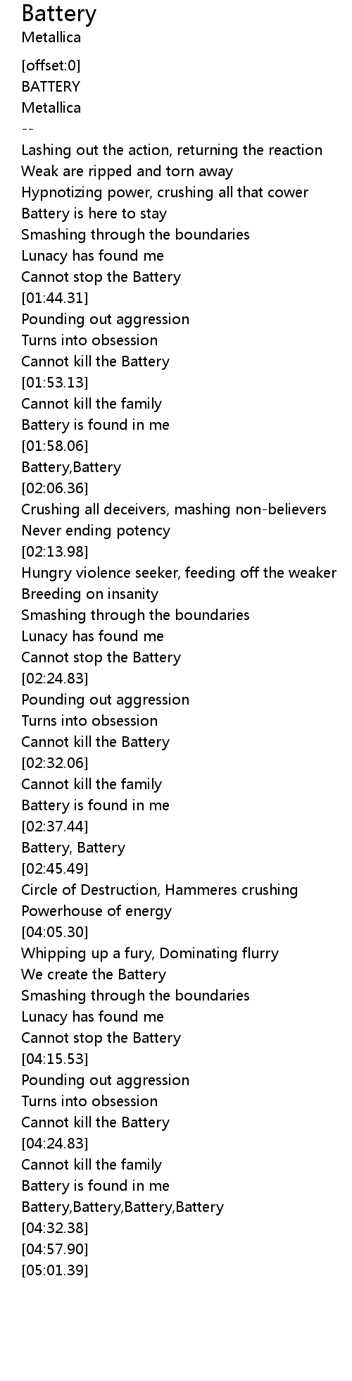 [02:00.69] Battery,Battery