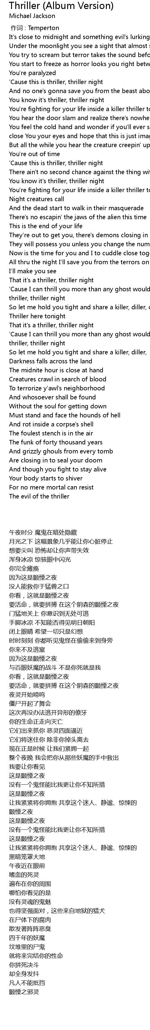 | [02:26.540] | 'Cause this is thriller, thriller night |