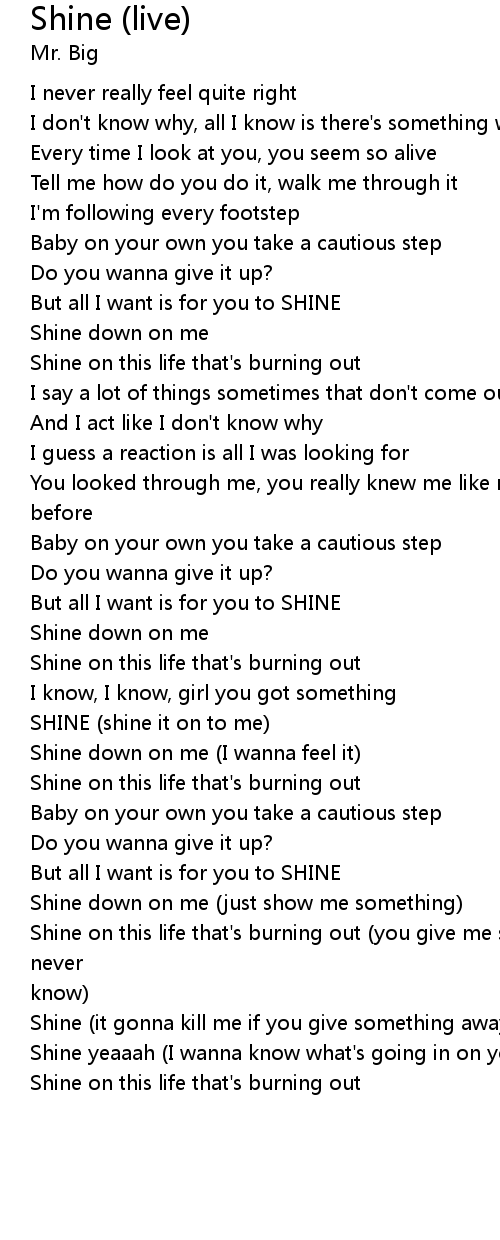 Shine yeaaah (I wanna know what's going in on your mind) |