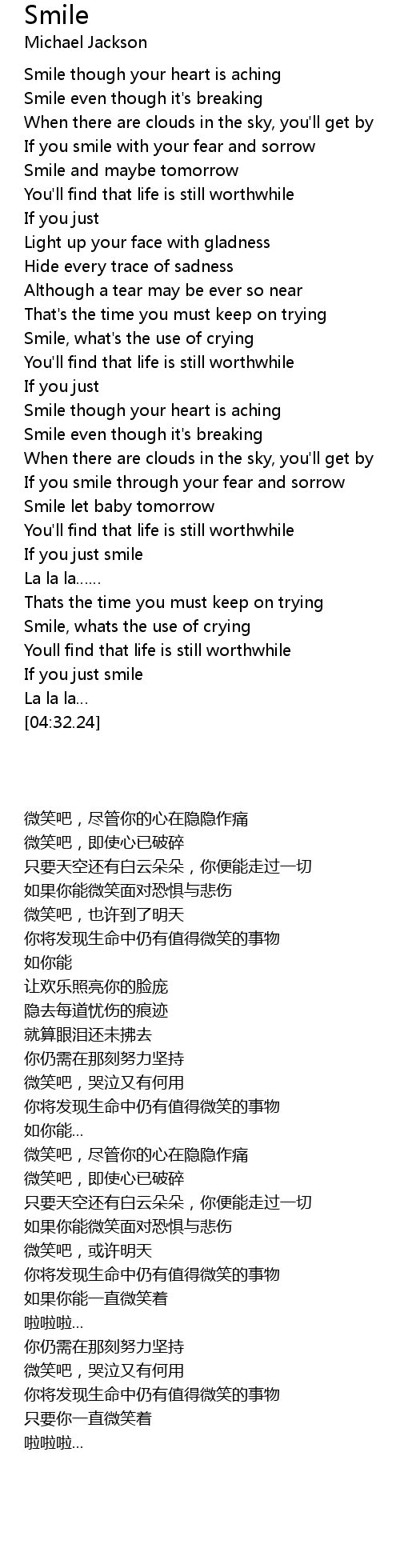 | [02:10.83] | 微笑吧,尽管你的心在隐隐作痛 |