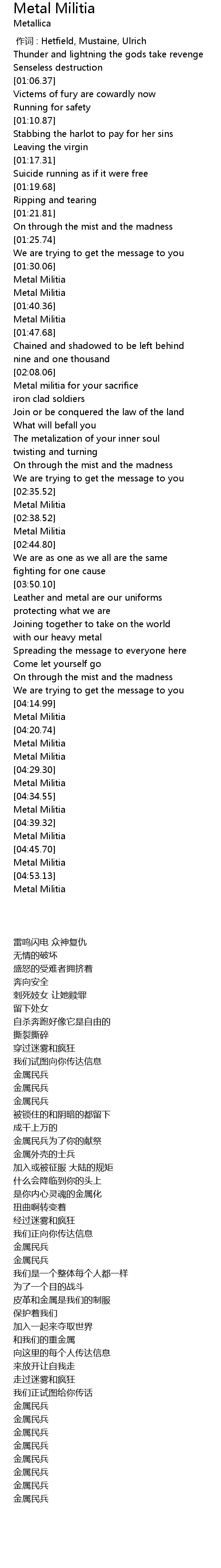 | [01:33.81] | 金属民兵 |