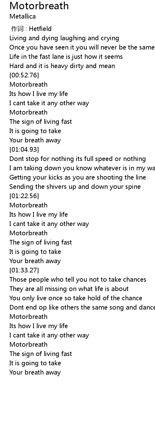 | [01:13.23] | Dont stop for nothing its full speed or nothing |