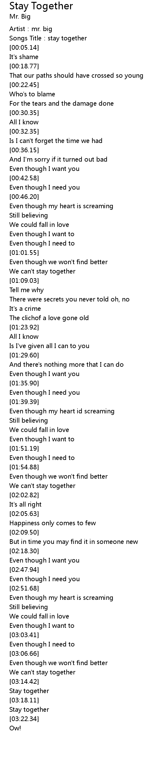 | [03:16.04] | Stay together |