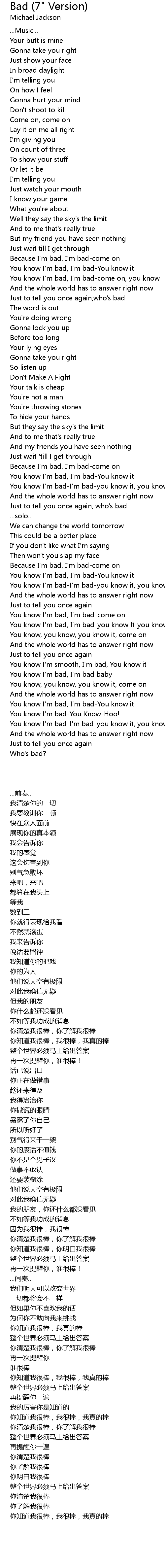 Bad (7" Version) 歌词